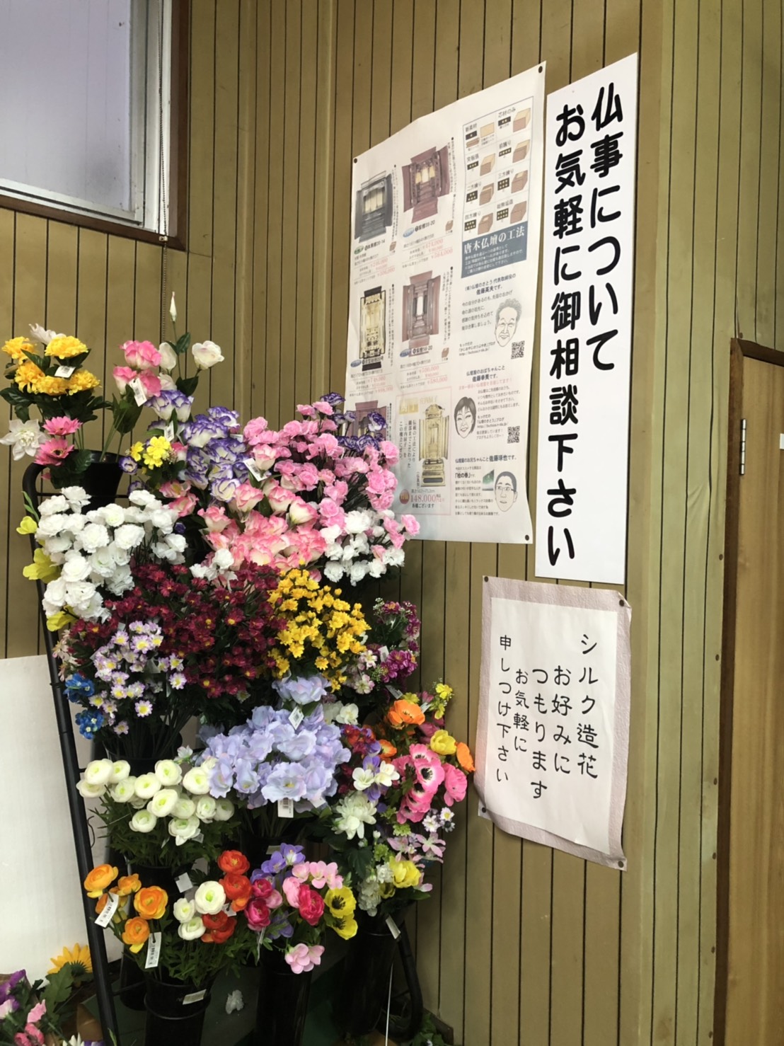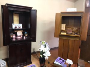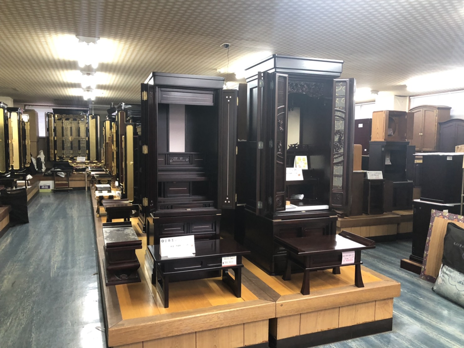 2階展示場に仏壇50本以上。