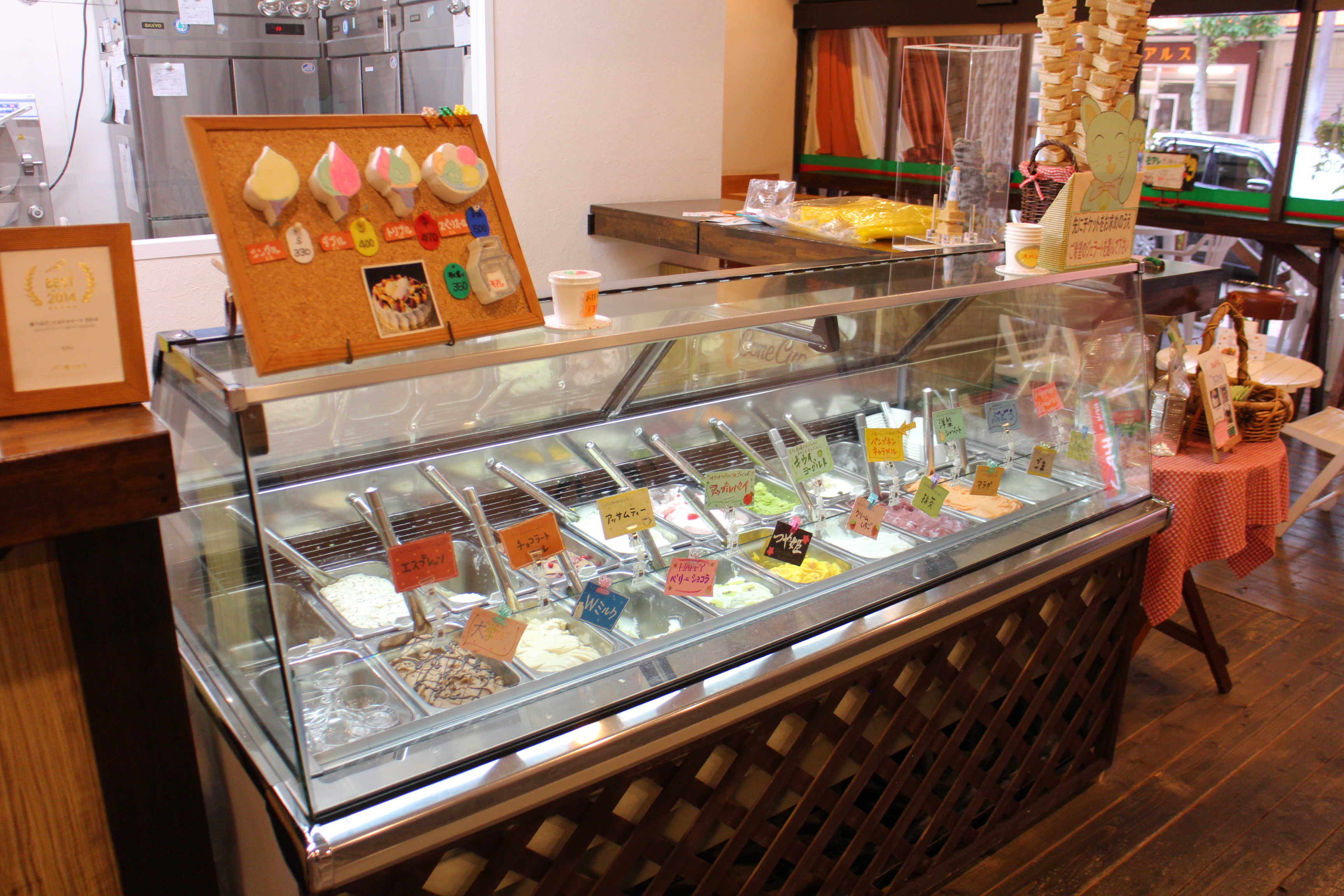 住所:酒田市中町1-7-18営業時間:10:00~18:00 定休日:火曜日電話:0234-22-5280駐車場:3台有近隣駐車場(酒田市中央地下駐車場)2時間無料券を差し上げます。公式ホームページ:https://gelatomoire.net/ Home Facebook-f Instagram 業務内容ジェラード製造、販売、飲食店取扱商品ジェラート、パスタ、ピッツァ、各種ドリンク月毎に変わるフレーバーの中には、そのシーズンの旬の食材や地元庄内の特産品を使って常時16~18種類を御提供。モチモチ食感が自慢の生パスタを使ったパスタランチや生地から手作りのピッツァも好評です。 イベント情報と旬のメニューをご案内 商店街に面した明るい店内 カフェスペースでゆっくりお召し上がり下さい 16~18種類のジェラート 山形県ブランド米「つや姫」のジェラート フルーツジェラートも豊富に取り揃えております Facebooktwitter 2019-10-05