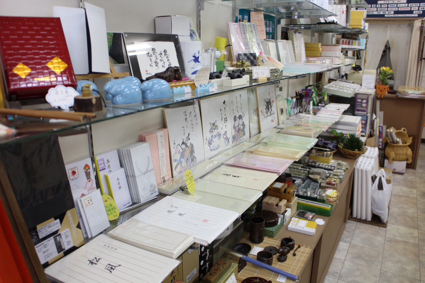 住所:酒田市中町1丁目7-6営業時間:9:30~18:00 定休日:日曜日、祝祭日、第2土曜日駐車場:有TEL:0234-21-9213FAX:0234-21-9215 『文房四宝』といわれる筆・墨・硯・紙をはじめ、絵手紙・日本画用品。机上を彩る文房小物。お部屋に「粋」を演出する色紙掛軸など初心者から専門家まで楽しめる書芸グッズがいっぱい。業務内容書道用品、篆刻用品、絵手紙用品、結納用品取扱商品筆、胎毛筆、硯、墨、半紙、画仙紙、加工紙、篆刻用品、書額、勲記額、軸装仕立、書画修復、文房小物、絵手紙用品、便箋、書籍、結納用品。 Facebooktwitter 2019-08-10
